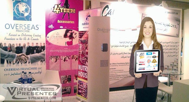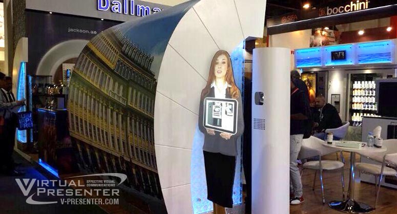 Bilingual hologram and two Live Windows by Virtual Presenter showcase job opportunities at Shell’s booth during Qatar Career Fair 2013. After the show VM was shipped to Germany to present the company at another event.