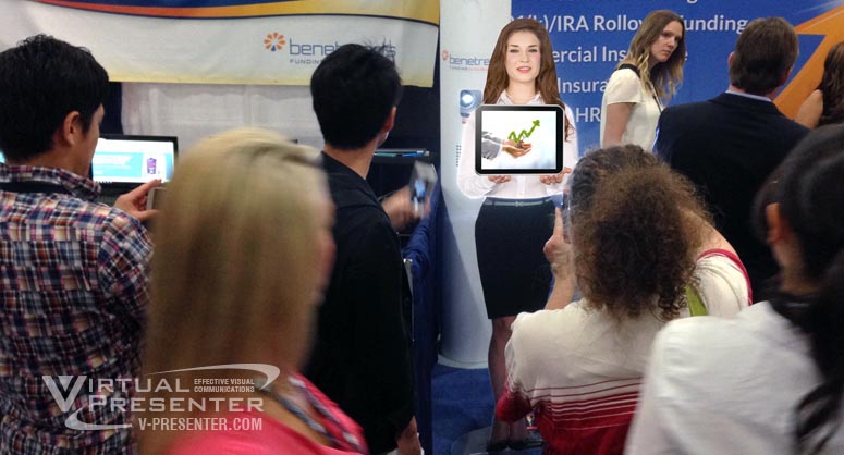 Bilingual hologram and two Live Windows by Virtual Presenter showcase job opportunities at Shell’s booth during Qatar Career Fair 2013. After the show VM was shipped to Germany to present the company at another event.